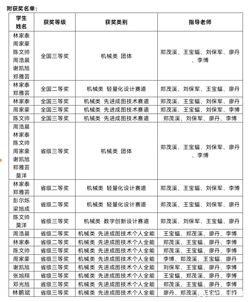 通过这次大赛,参赛学生既锻炼了计算机绘图能力、产品设计及实作能力、报告撰写能力、创新思维与团队协作精神,同时也认识到了和其他高校优秀学生的差距,并表示将继续加倍努力,不断提升自己。这也是机电工程学院“以赛促教、以赛促学、以赛促训、教学训赛一体融合”理念的成功实践,有助于促进高素质应用型人才的培养。